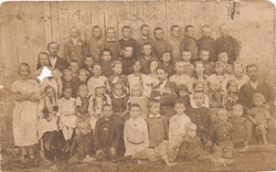 Na zdjęciu szkoła podstawowa w Sądowej na którym jest Antoni Piątek oraz rodzina Pieniążków (kierownik szkoły).