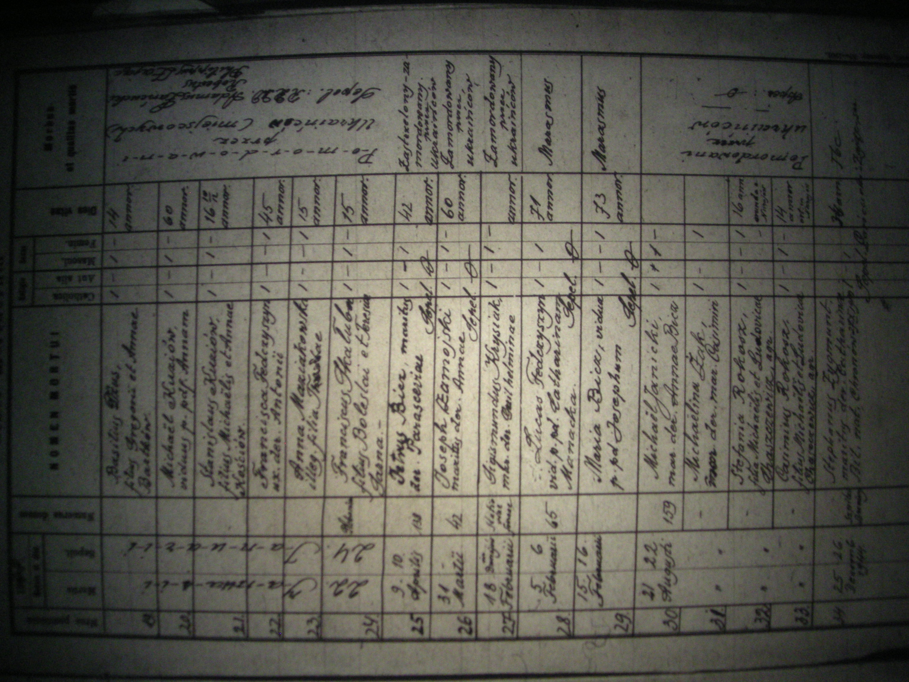 Załącznik nr 1 - Kopia ksiegi zgonów dot. mieszkańców m. Buszcze w tym dot. Rokosz Stefania (poz. 32). Ze zbiorów prywatnych Pana Józefa Szczepanika.